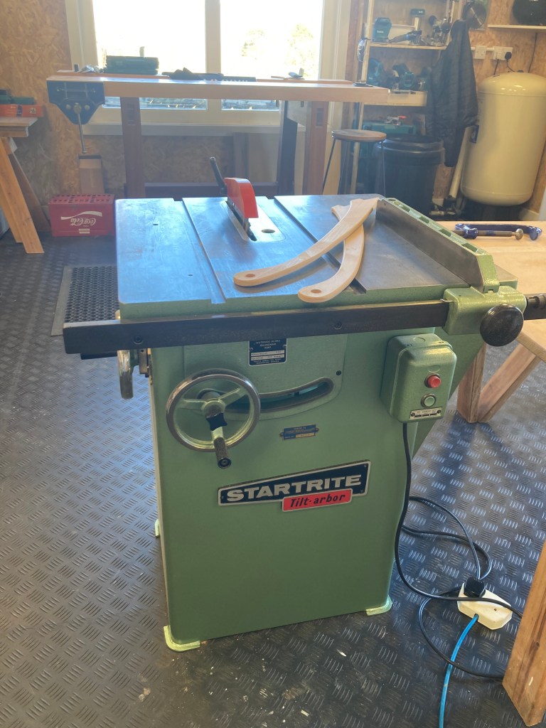 At the other end of the country, Startrite built a wide range of wood and metal-working machine tools in Gillingham, Kent, from about 1950-2015. This little table-saw from 1960 has also been the subject of a nuts-and-bolts restoration and it too is in immaculate condition. I drove to Harwich for it! The cast iron frame and table top means that it weighs 90Kg and it too runs without vibration and little noise. Its diminutive footprint fits easily in my workshop. Sixty years ago, dust wasn’t seen as a hazard and it just piled up by the side of the machine. Nowadays we are focused on removing dust and in particular the small airborne particles. I have already tested an extraction outlet at the bottom which will remove 80% of the dust and a few more modifications will improve matters further. After that, I’ll add an outfeed table so wood doesn’t end up on the floor!