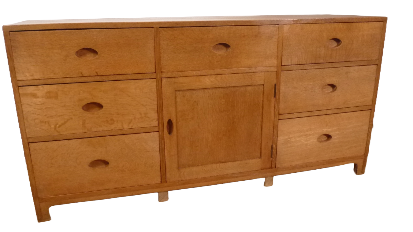 The dresser bears the scars of nearly 100 years as it has passed through three generations of my family. The sparse design celebrates the richness of quality timber and the ease with which the drawers still slide bears testimony to the skill of Ambrose Heal’s craftsmen.